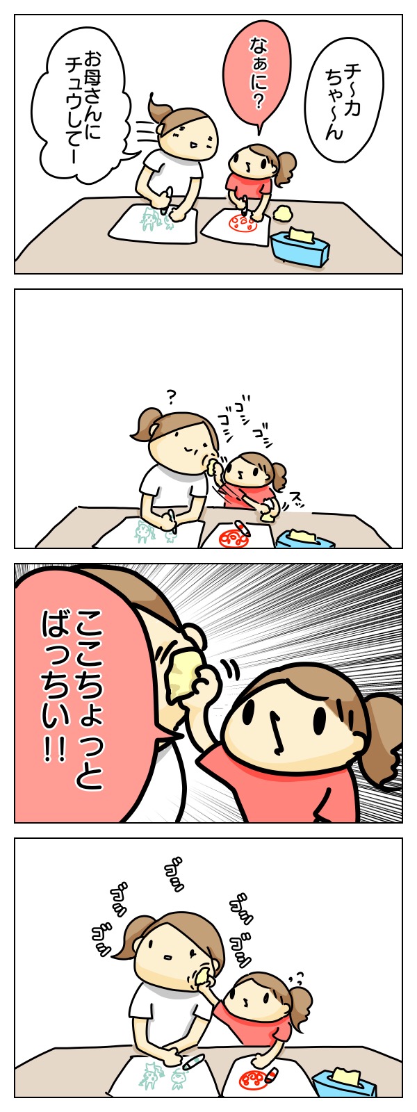 2018年05月23日 お母さんばっちくないよ… 念入りに拭いてくれました。きっとおやつに食べたおせんべいでもついていたんでしょうね。きっとそう。気を取り直して最近の話でも幼稚園から帰ってきたあとは、晴れてたら公園に行くのですが雨のときは大抵ポケモン描いてます。最近見ているのがサン&ムーンという新しいものなのでリクエストされるポケモンが新種だらけです。ソルガレオとかバクガメスとか。初期のポケモンの描きやすさを今になって知る。ランキング参加しています。クリックで応援よろしくお願いします!育児絵日記ランキングへ 「チカ・年少」カテゴリの最新記事 < 前の記事次の記事 > コメント コメント一覧 (6) 1. めめ 2018年05月23日 11:04 わかりますー(^^;) 初期の頃って、元になってるのがなんの動物かとかわかりやすかったけど、今のはロボ的な(?)フォルムのも多くて凹凸も激しめですよね。 2. モモ母 2018年05月23日 12:15 ポケモン懐かしいです!ゲームボーイでしてた世代なので、今のキャラはさっぱりわかりません(^_^;) 娘は最近アンパンマンに反応するようになり、ハマるかな?とドキドキしてます。 3. さかなパパ 2018年05月23日 12:18 お久しぶりです!初代ポケモンは世代だったのでよく分かるのですが、今のポケモンは名前も見た目も全然覚えれませんね… 相変わらずの、ちかちゃんの可愛さに癒されました♪ありがとうございます 4. くろ 2018年05月23日 15:52 ばっちいめっちゃ笑ってしまいました笑 チカ母様のブログにいつも元気をもらってます! 質問なのですが、過去記事(赤すぐ記事です)にあった向きを変えたドアノブは、今でもチカちゃんは自分で開けられませんか? もし開けていたら大体どのくらいで突破されたか参考に教えて欲しいです! 5. ゆずまま 2018年05月23日 17:32 うちの子もポケモンにはまっててかいて!と言われては難しさに苦戦してます( ´;ω;`)笑 よかったらいくつかupしてください!!参考にしたいです! 6. myura 2018年06月01日 02:08 初期のポケモンが描きやすいのはドットで表現するためらしいです http://www.yomiuri.co.jp/fukayomi/ichiran/20180501-OYT8T50139.html ピカチュウのほっぺに「ほお袋」があったなんて可愛すぎる・・! コメントフォーム 名前 コメント 記事の評価 リセット リセット 顔 星 情報を記憶 コメントを投稿する