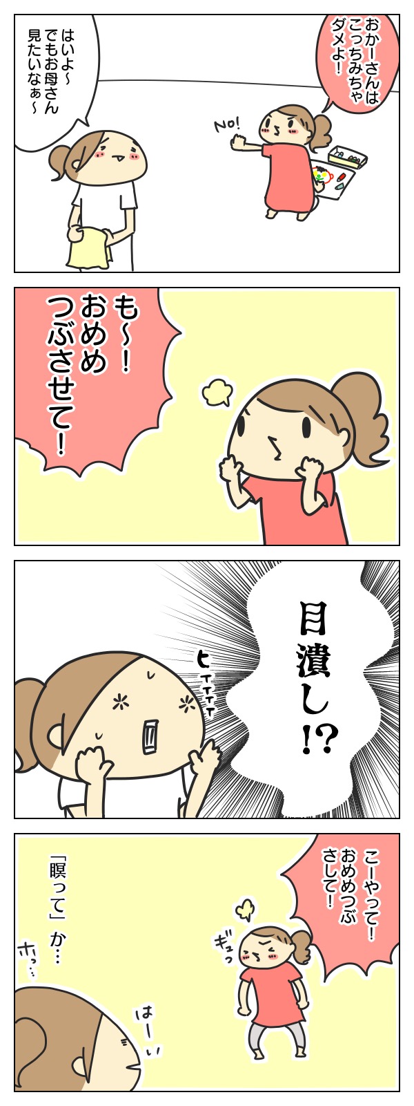 「おめめつぶさせて!」