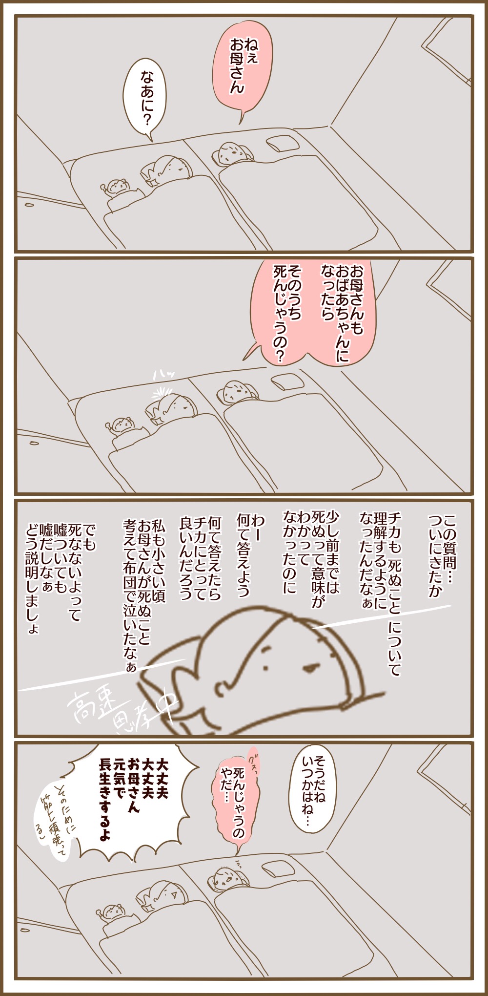 実際には、母親とそんな会話をしたことはなく、幼少期からわりと死に対してドライだったんですが…不思議なものですね。