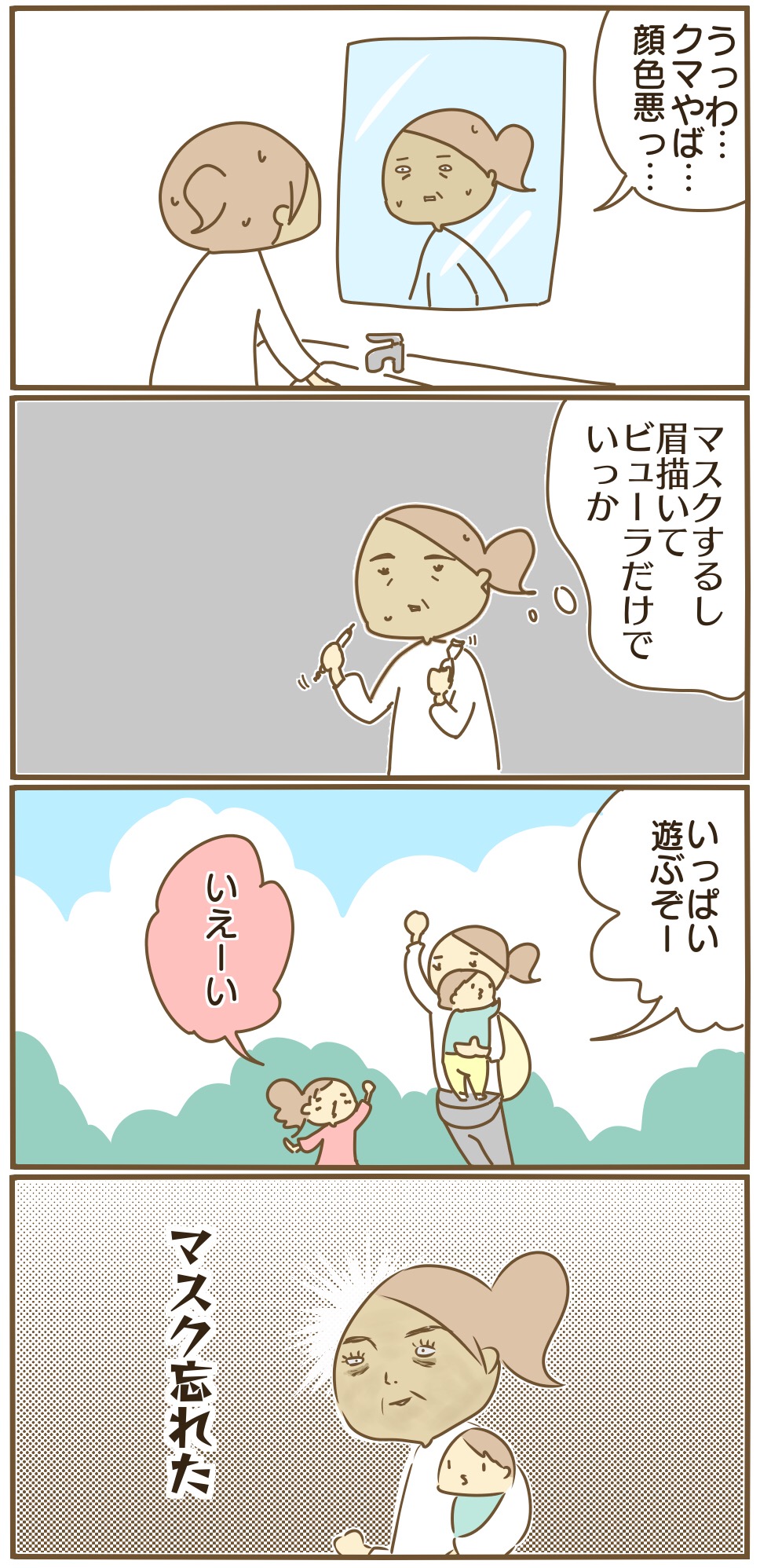 2020年02月20日 マスクはいろいろ防護してくれる こんにちは年中さんの娘(チカ)と、11ヶ月の息子(ヒナ)が可愛くてたまらんチカ母です今日は自分の話です色々と護れない最近は外出時はマスクが常なのですがそのせいで化粧が緩くなり顔が事故現場ですなのでマスク忘れたときは、どっかにモザイク落ちてないかなって現実逃避したくなる Instagramも是非!・チカ母のページ こちらも是非!ランキング参加しています。クリックで応援よろしくお願いします!育児絵日記ランキングへ 「チカ母」カテゴリの最新記事 < 前の記事次の記事 > コメント コメント一覧 (2) 1. タミポ 2020年02月20日 10:17 この、顔が事故現場現象、わかりみが深すぎて笑いました(笑) マスク前提でテキトーーにやったメイクでマスク忘れた時、時には眉毛犬みたいなことになってたりしますよね〜笑笑ꉂꉂ(ᵔᗜᵔ*) 0 chika_mother がしました 2. ぷんこ 2020年02月20日 10:33 わかるーーー!!(笑)ꉂ笑ʬʬʬʬʬʬʬ 分かりすぎて嬉しくなっちゃいました(笑) 0 chika_mother がしました コメントフォーム 名前 コメント 記事の評価 リセット リセット 顔 星 情報を記憶 コメントを投稿する