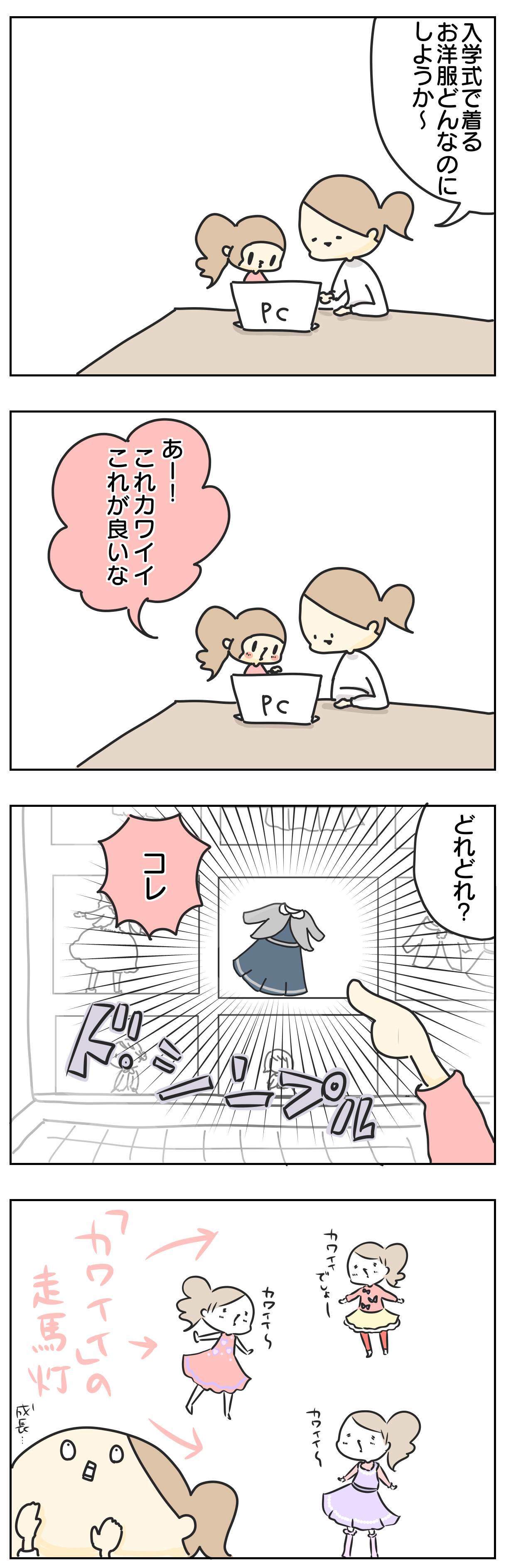 入学式の服もこの路線で行くとは思っていなかったのでお母さん驚き桃の木。