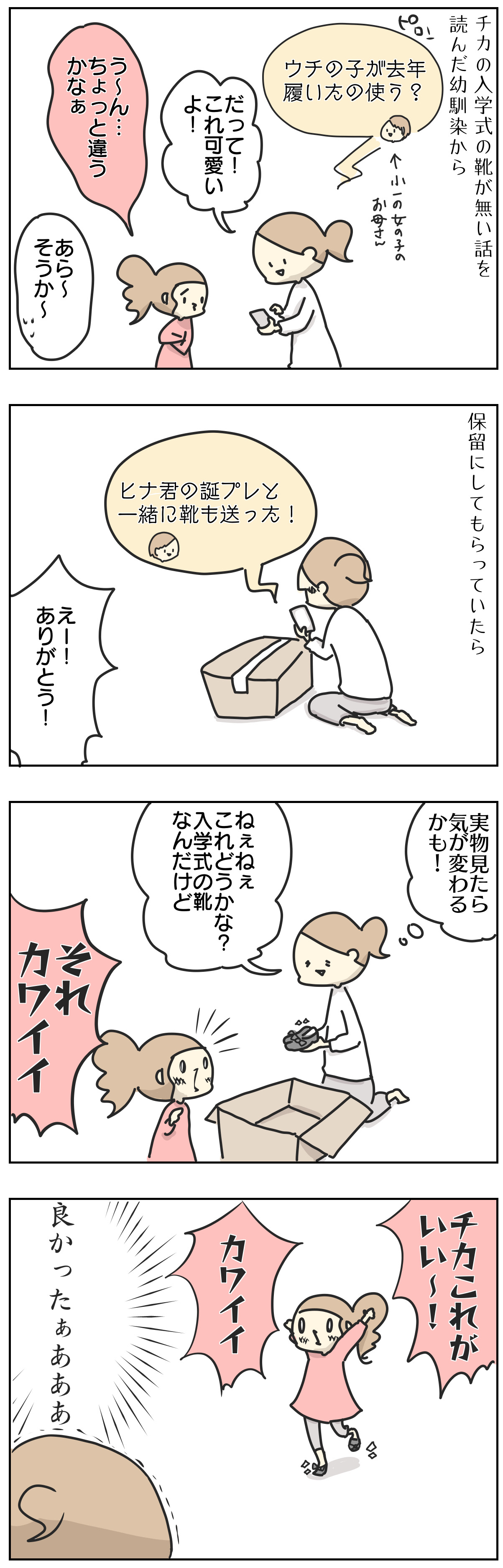 さて、今日は長らく悩みのタネだったチカの入学式用クツ問題(コレ↓)の話です。