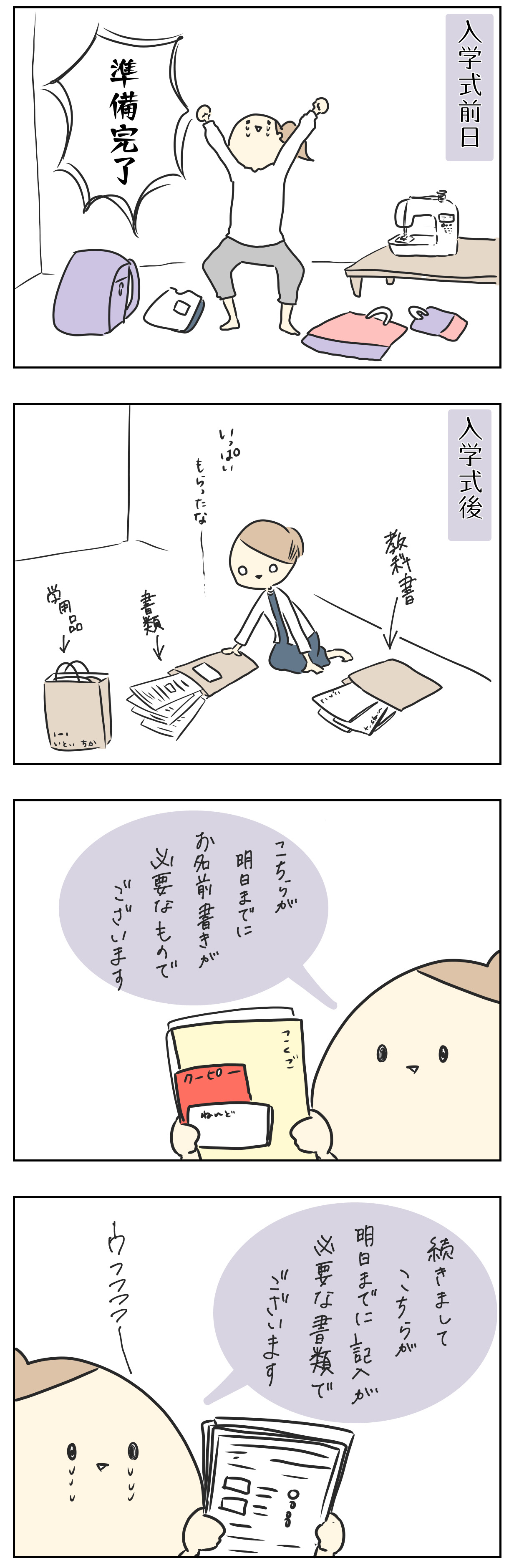 入学式で色々もらって、その後も順次必要になっていくものの準備でなかなか気が休まらず