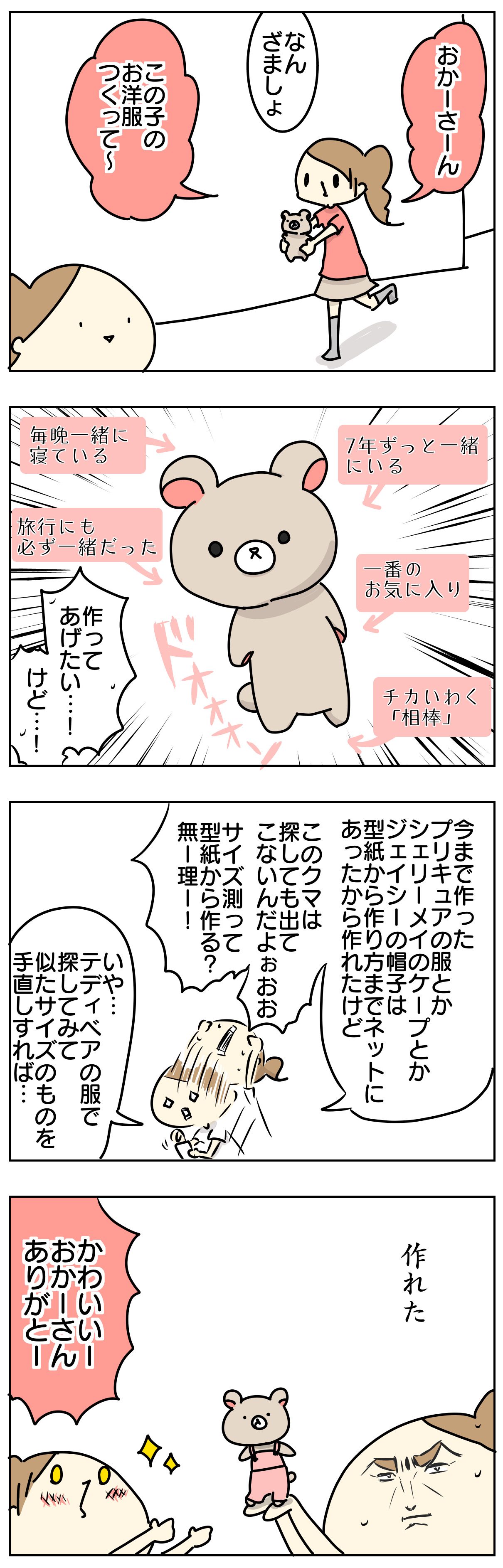 チカのお気に入りのぬいぐるみのお洋服作りをお願いされたので私の夏休みの自由工作が開始されました