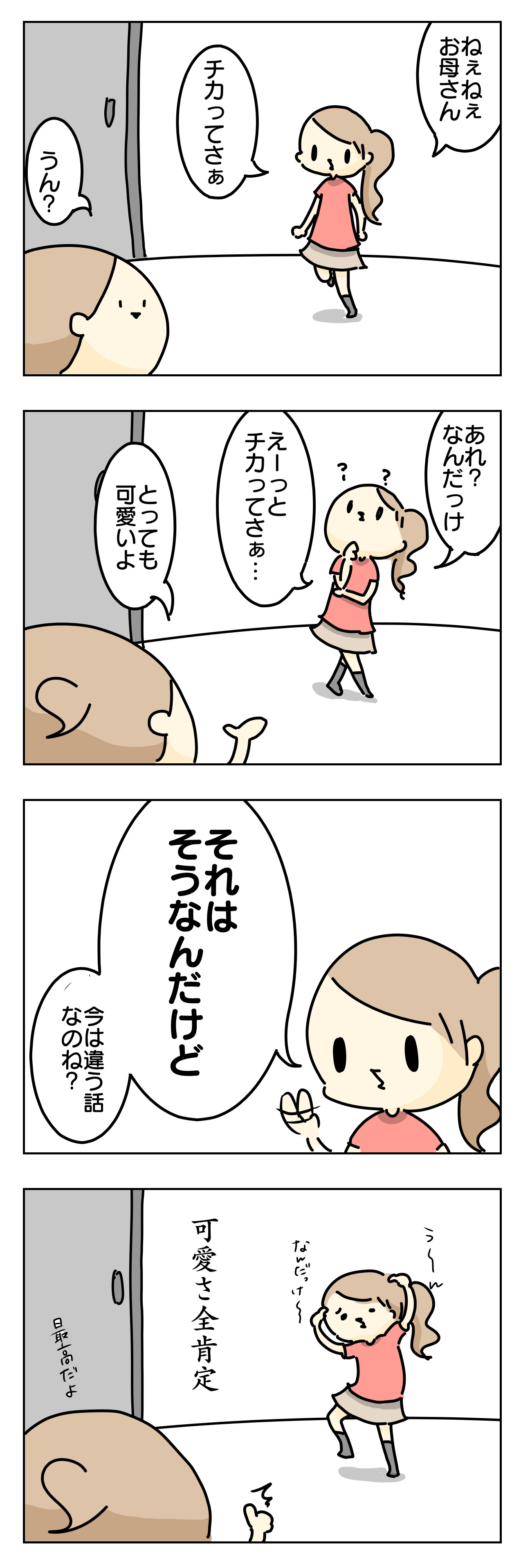 私がチカに、「可愛いね」って言葉を会話に挟むと