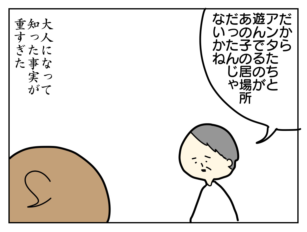 みんなが学校にいっている時間や、公園からの帰りはどうしていたのだろうかと思うと、親になった今はなんとも言えないものがあります。