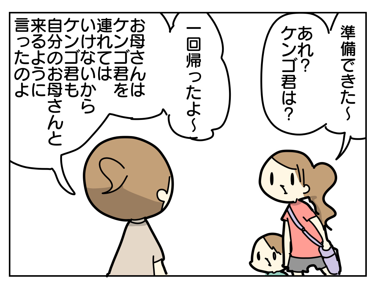 チカはまだ子どもだけで公園には行けないことと、私もヒナとチカを連れていくのでケンゴ君の安全まで守れる自信はないことを伝え、ケンゴ君もお母さんかお父さんとおいでと言って一度帰らせました。
