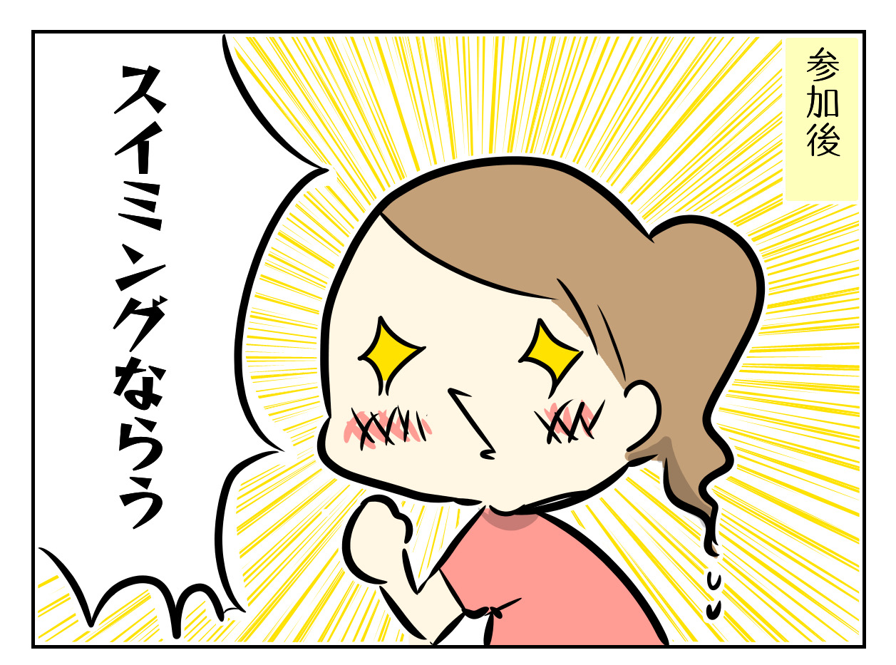体験担当のコーチがとても優しくて褒め上手で、チカは3日の体験終了後にはすっかりスイミング大好きっ子に。