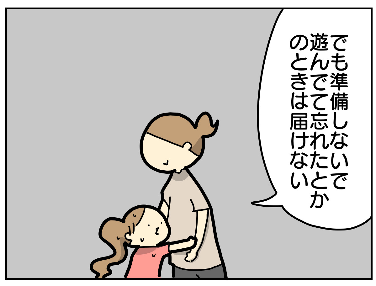 “お母さんが届けてくれるから忘れ物しても大丈夫!”とは思ってほしくないなということで、帰ってきたチカにこういう話をしました。