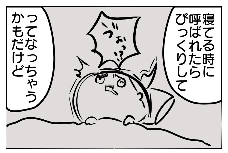 特に3コマ目を毎回言ってまして、これは昔にチカが夜中に咳こむことが続いて、私も眠れず寝不足でキツかったときに、もし夜にチカが起こしてきたときに眠気が勝って迷惑そうにしてしまったらチカ傷つくだろうなぁ…と思い