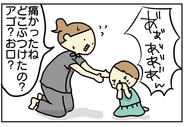 すると、ベッドの前で転んでしまいました。
