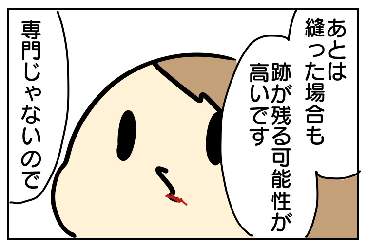 顔の怪我で、下唇のかなり目立つ部分なので傷跡が残ることはなるべく避けたい親心。