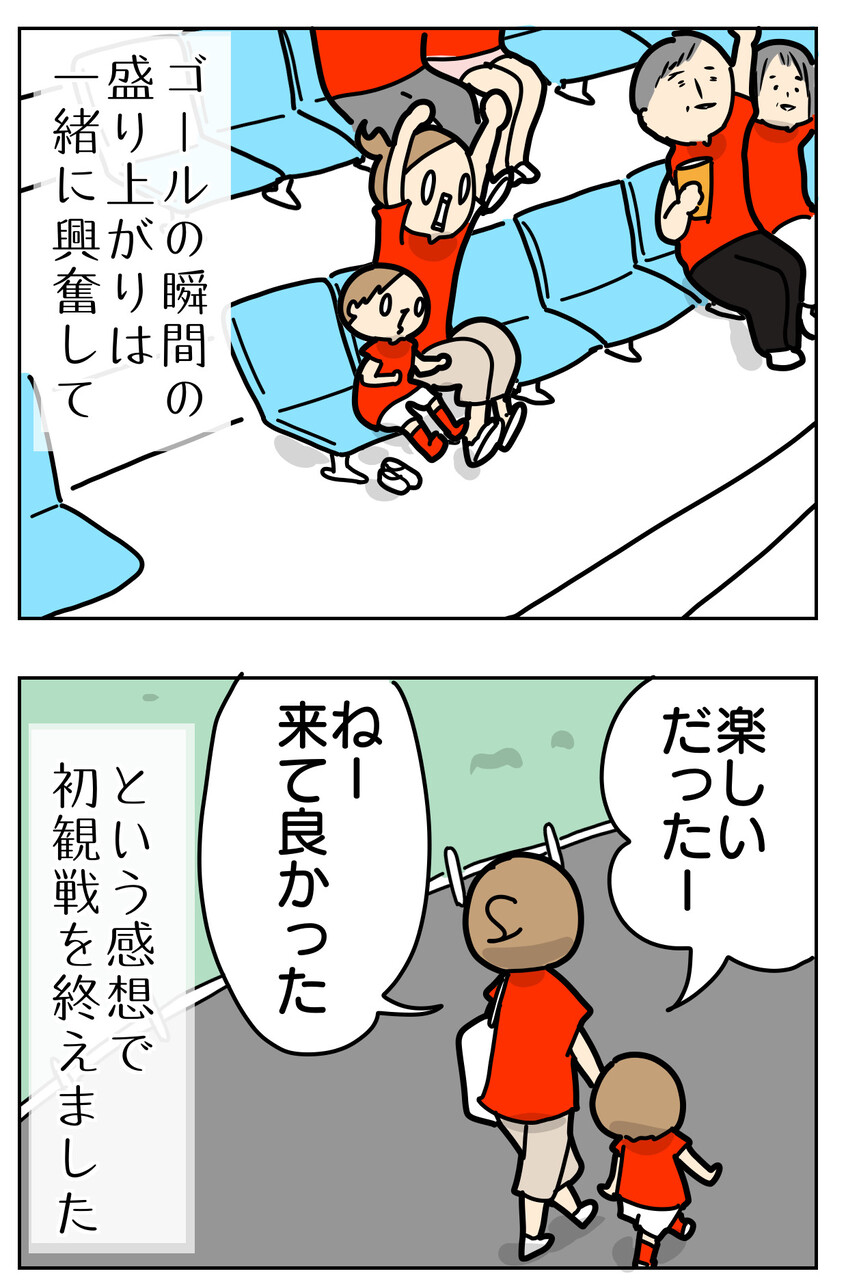 ミニバス仲間と行ったので、子供たちはソッコー飽きて友達のスマホで遊びだす始末でしたが、保護者の方が大盛り上がりで、ゴールが入るたびに吠えまくって楽しかったです。