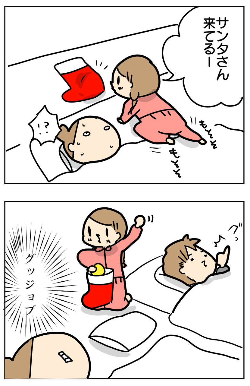 そしてチカはサンタさん用にクッキーを靴下に入れていたのですが、それも回収してくれてました。