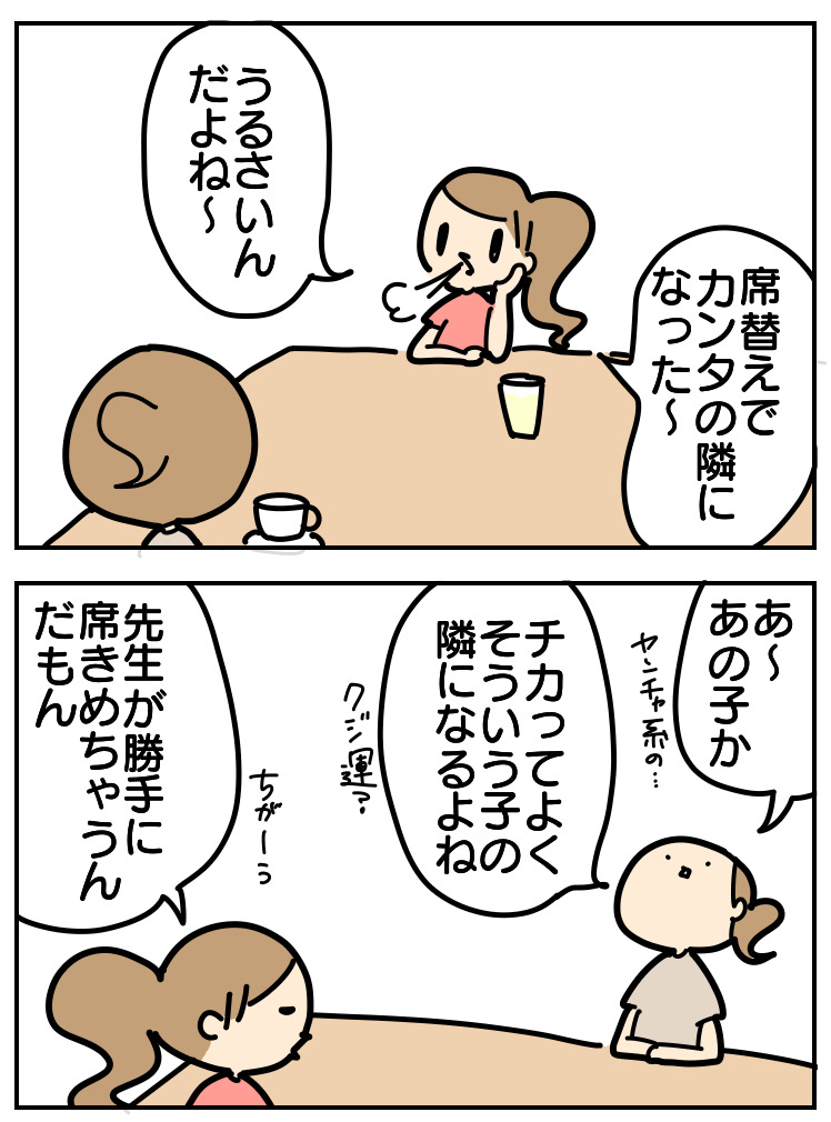 毎回隣の子にちょっかい出したり落ち着きがない子の隣の席になってて、意図的にしてる旨は面談で先生からも聞いてたり。