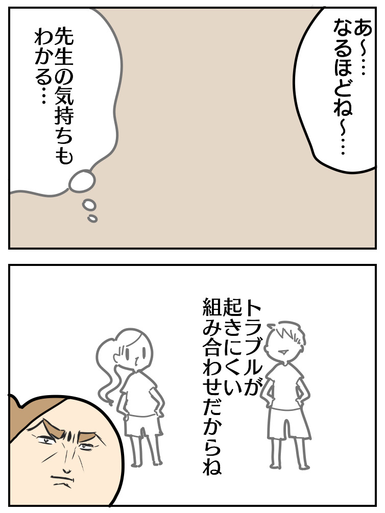 かと言ってトラブルまでには発展してないので、先生の意図も分かるし、、とはいえ、という感じで2年目突入してます。もちろん何かあれば先生方がフォローしてくださってるのも分かってるので今も様子見。