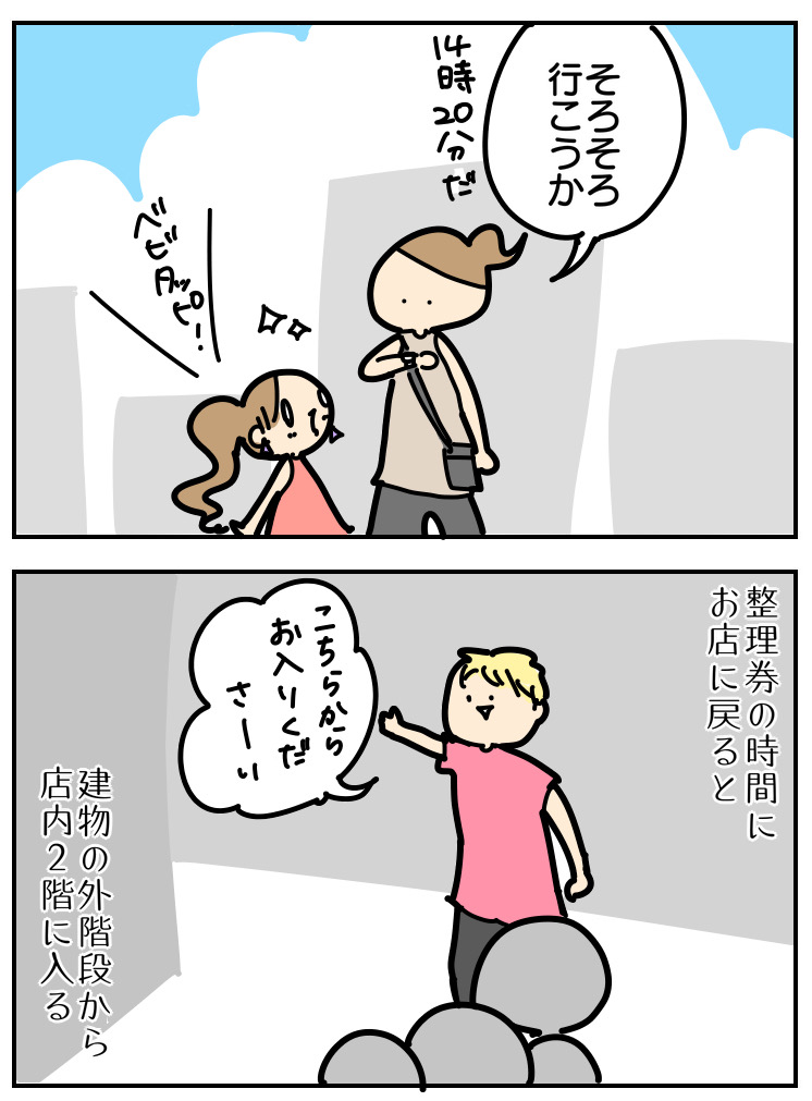 整理券の時間にお店に戻ると、お店の外階段から2階の店内へという誘導でした。