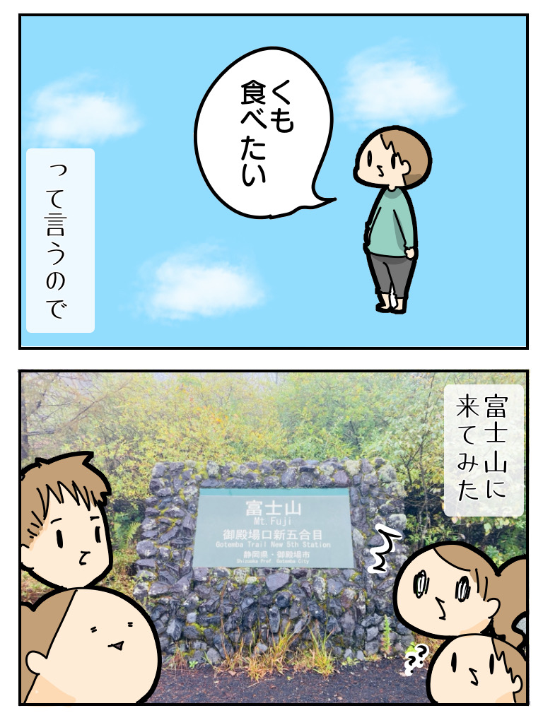 5合目まで車で登ったので、駐車場から降りて周りを見ても、富士山にいるというのが信じられない様子でした。