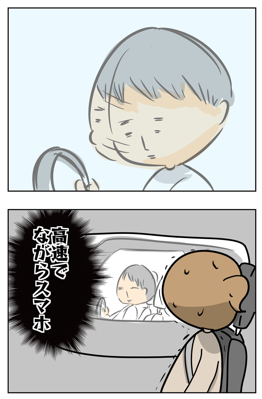 スマホホルダーに取り付けたスマホを操作している高速ドライバーも見かけますが、顔を斜め下に向けてのながらスマホはさらに命知らず。
