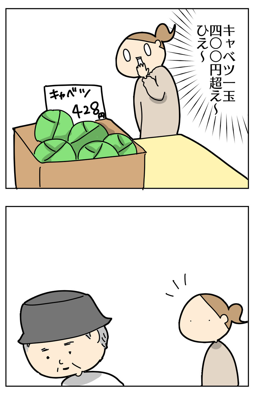この時のキャベツが我が家の近所のスーパーの最高値でした。