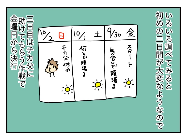 多分、三日目の方が私が疲れ果ててそうだと思ったのでこのスケジュールにしました。