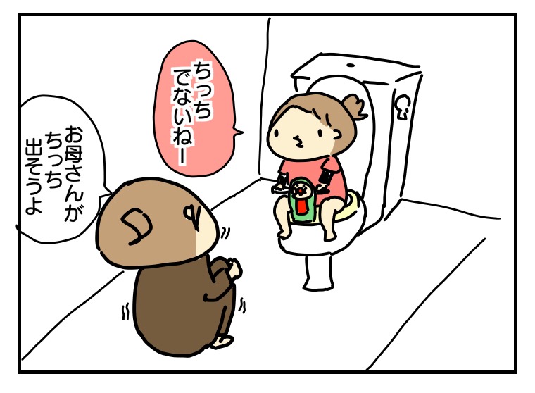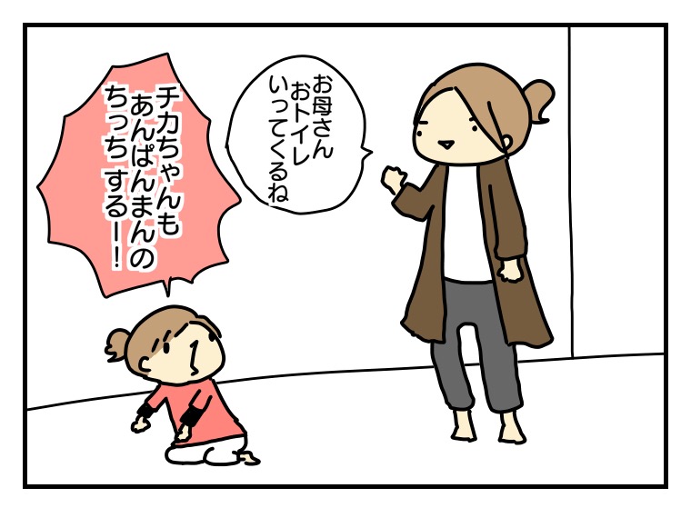 お母さんがトイレ宣言をすると、結構な割合でチカもトイレに行きたがります。
