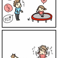 布団の真ん中まで跳んでくるようになりました。我が家の寝室が、ベッドの隣にマットレスを敷いてあるのでチカが飛び跳ね放題です。ベッドの上で跳ねるのも好きなので、寝室ではキャーキャー言いながら走り回って飛び跳ねての大運動会です。だいぶ前なんですが、トランポリン・・・