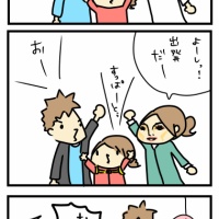 一気に親密度アップ。ジャム夫この日から、彼(ジャムおじさん)はジャム夫として親しまれています。そして、少し前に二語文が出てきたと思ったらあっと言う間に「あれ、なに?」「これ、アンパンマン」「アンパンマン、いなーい」と会話らしくなりました。2コマ目のように、・・・